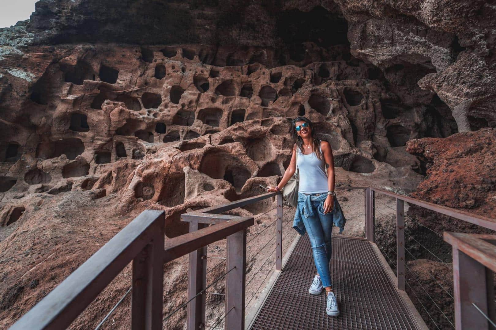 North Gran Canaria is home to one of the most spectacular archaeological sites in the Canary Islands due to its huge size: The Cenobio de Valeron. The pre-Hispanic Canarians used This giant communal granary to store their staple food. It comprises over 300-grain silos cut into the soft rock and linked on several levels. It was a significant engineering feat and worth a visit due to its cultural and historical value to Gran Canaria.